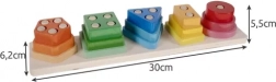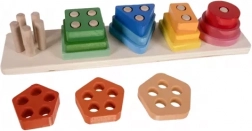 Træsorter og puslespil KRUZZEL er et klogt, pædagogisk legetøj til børn fra 2 år. Farverige dele i grundlæggende former – cirkel, trekant, kvadrat, rektangel og pentagon – sættes på pinde med forhindringer, hvilket motiverer børn til at manipulere og bevæge fingrene præcist. Legen understøtter genkendelse af farver og former, tålmodighed og hukommelse.