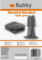 Tæppet er lavet af fin polyester med en vægt på 250 g/m², som varmer fremragende og føles behageligt. Ærmer og hætte holder varmen tæt på kroppen, mens den rummelige lomme varmer hænderne og rummer telefon, fjernbetjening eller bog.
