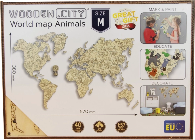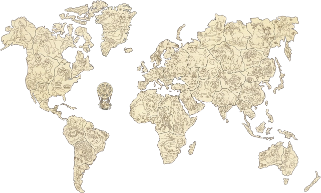 Udforsk verden på en legende måde. Træverdenskortet med dyr i målestok 1:57 mio. er præcist laserskåret i birkekrydsfinér og udmærker sig ved rene linjer og træets naturlige åretegning. Det egner sig perfekt som dekoration og som læringsredskab – børn udvider på en sjov måde deres kendskab til kontinenter, oceaner og dyr.