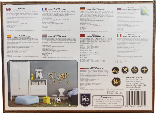 Et stilfuldt træverdenskort med dyr fra WOODEN CITY er en smuk dekoration til børneværelset, som understøtter kreativitet og interesse for natur og geografi. Takket være den nemme installation med dobbeltsidet klæbebånd sætter du det hurtigt op på væggen, døren eller skabet. Det er lavet af kvalitets birkekrydsfinér og indbyder direkte til at blive farvelagt.