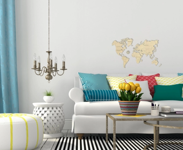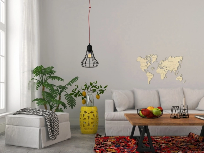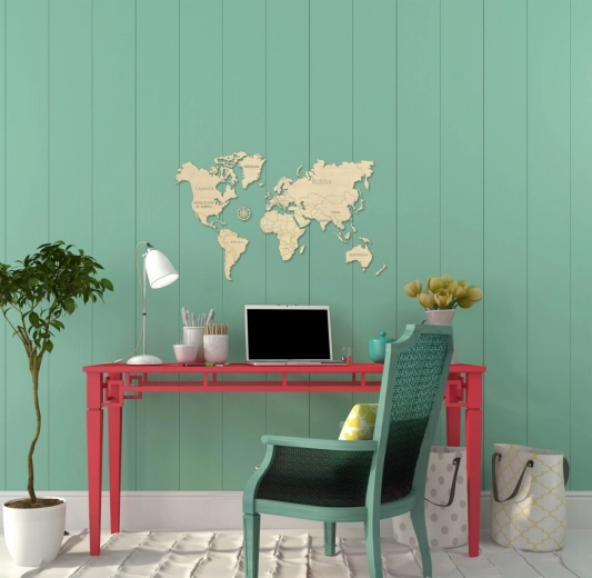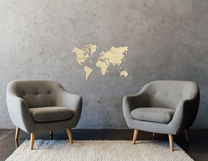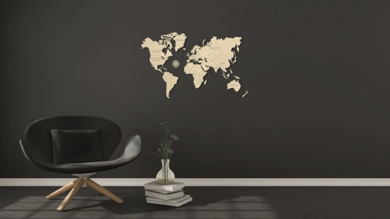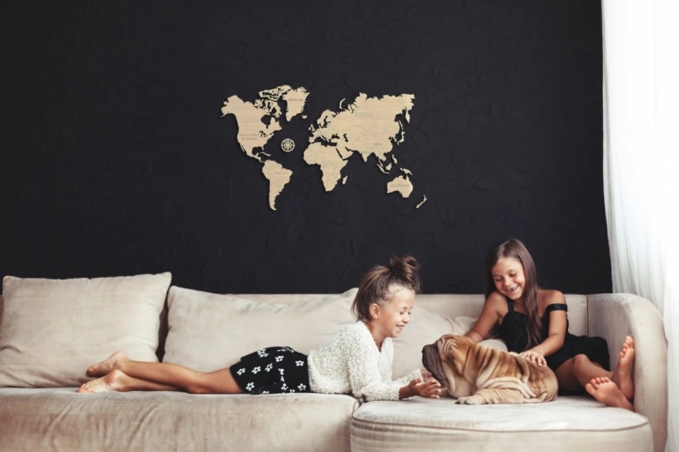 Kortet fungerer som en stilfuld vægdekoration og hjælper både børn og voksne med bedre at orientere sig i verdensgeografien.