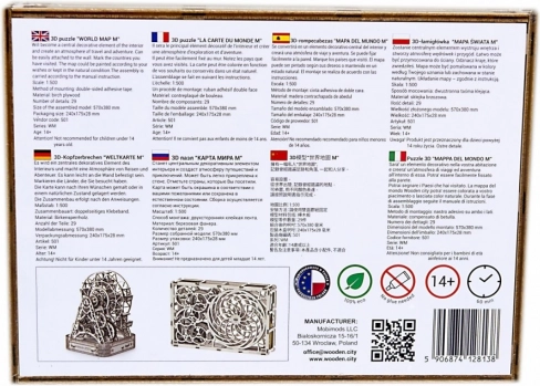 Kortet er perfekt til at registrere oplevelser – besøgte steder kan du farvelægge eller sætte nåle med flag i træet. Takket være den lette sværhedsgrad samler du det på cirka en time, uanset om det er derhjemme eller på kontoret.