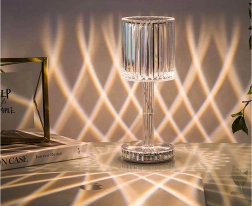 Det riflede, transparente design skaber imponerende mønstre på de omkringliggende flader, når lampen tændes. Ideel som natlys og dekorativt interiørelement.