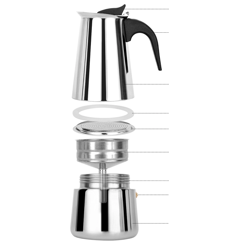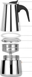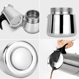 Kapaciteten på op til 12 kopper gør den praktisk til både familie og gæster. Det varmebestandige håndtag gør ophældning let, og rustfrit stål sikrer lang levetid og modstandsdygtighed mod ridser. Kanden kan bruges på gas- og elektriske komfurer og kan nemt skilles ad og rengøres efter brygning.