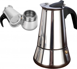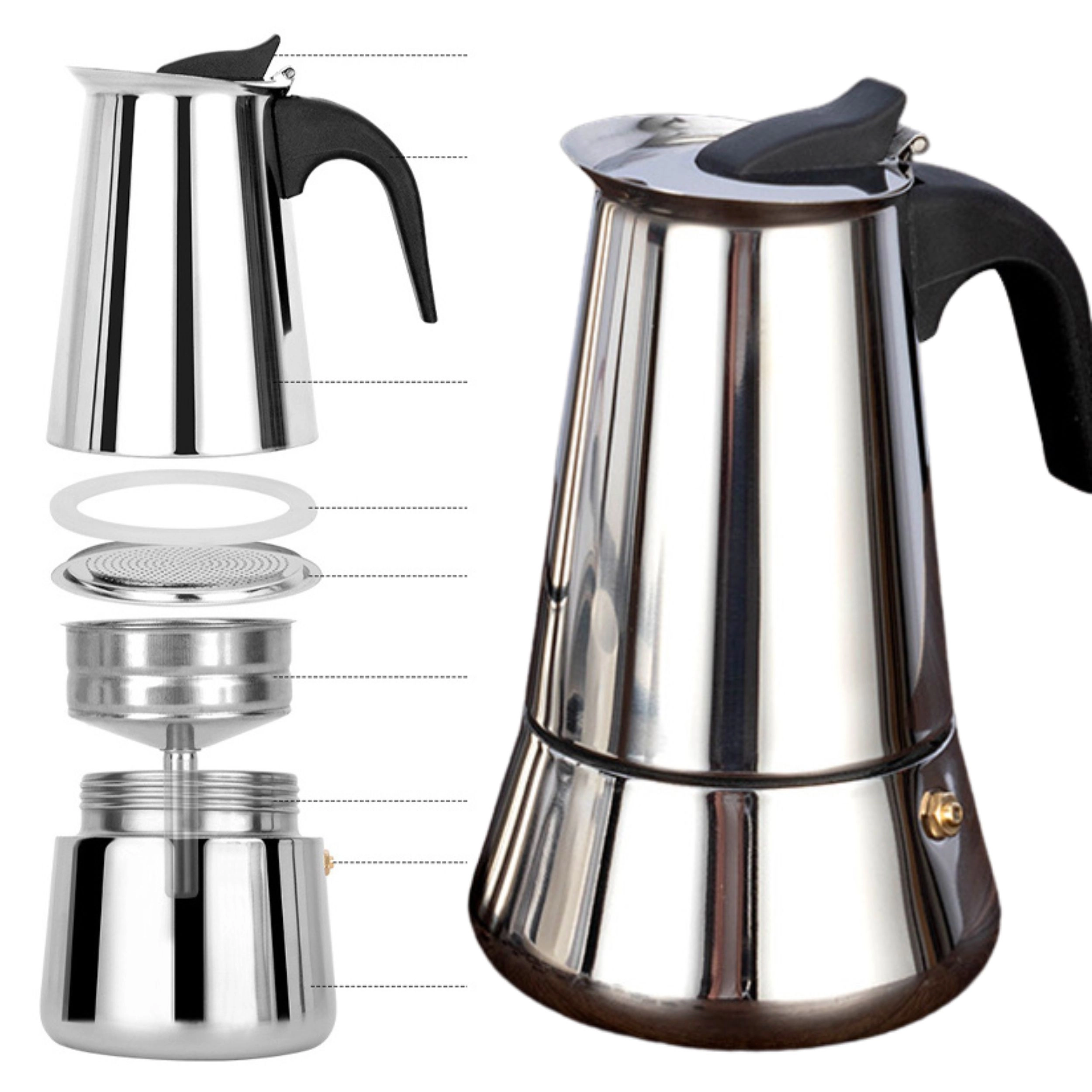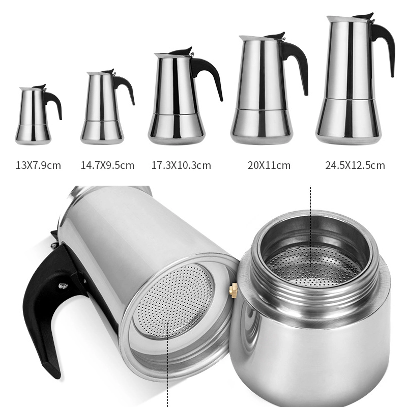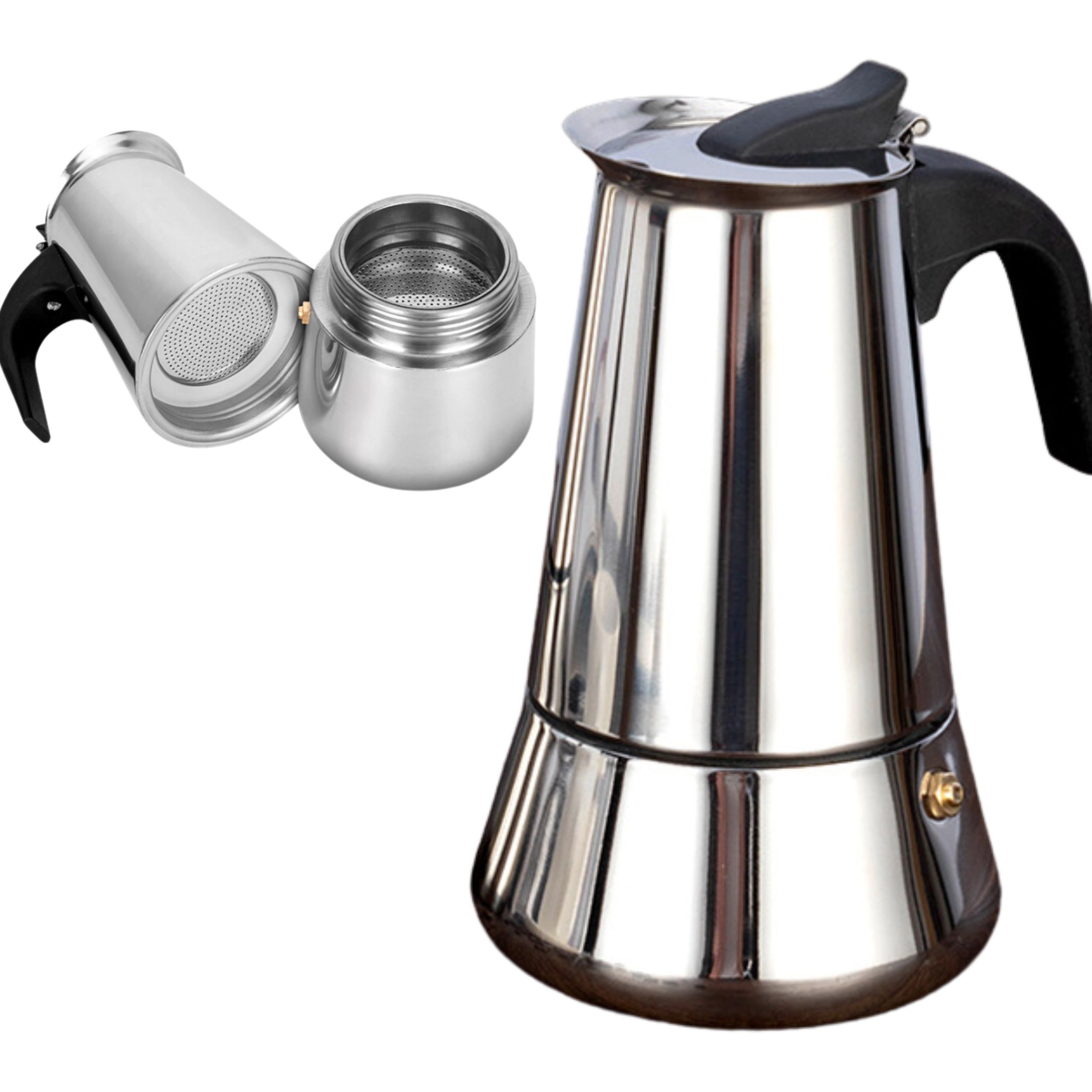 Nyd autentisk kaffe hjemme med denne elegante mokkakande i rustfrit stål med en kapacitet på 600 ml. Den brygger op til 12 kopper aromatisk kaffe med fyldig smag, kan bruges på gas og el, og det kvalitetsfilter sikrer en drik uden grums. Den er lavet af holdbart rustfrit stål, har et ergonomisk håndtag og er nem at rengøre – et ideelt valg til både daglige ritualer og servering for gæster. Autentisk smag, kapacitet op til 12 kopper, rustfrit design, brug på komfur, nem vedligeholdelse.