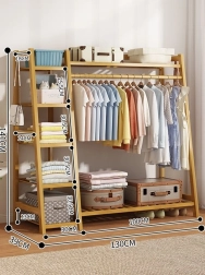 Elegant og funktionelt bambus tøjstativ med længde på 130 cm, ideelt til overskuelig opbevaring af tøj og tilbehør. Det kombinerer en bøjlestang med fem praktiske hylder, så du har alt ved hånden – fra frakker og jakker til kasser, håndklæder eller plaider. Det naturlige bambus giver indretningen et varmt, moderne udtryk og er samtidig miljøvenligt.