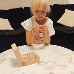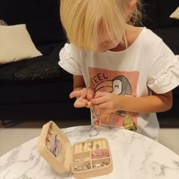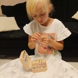 Dette kreative sæt er det ideelle valg for børn, der elsker at skabe og designe. Det indeholder mange farverige vedhæng i forskellige former og farver, hvilket giver mulighed for at skabe originale smykker. Alt er sikkert opbevaret i en transportabel kuffert med lynlås, hvilket gør det nemt at tage med i skole, til venner eller i haven.