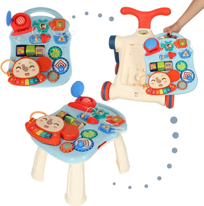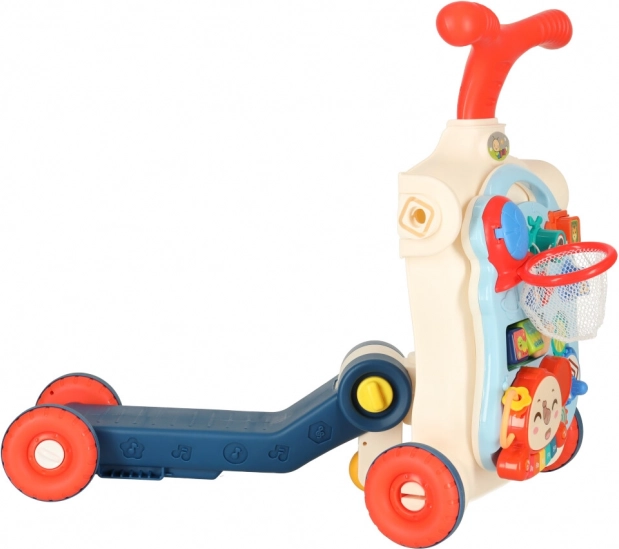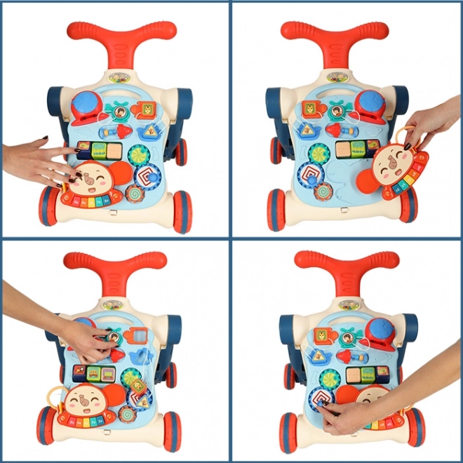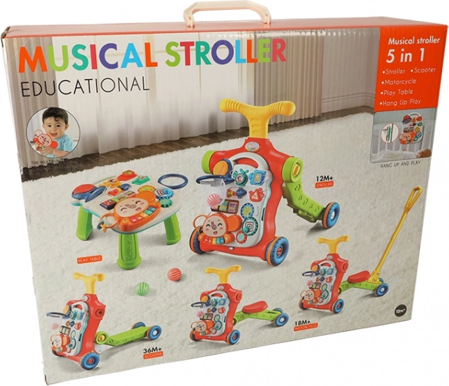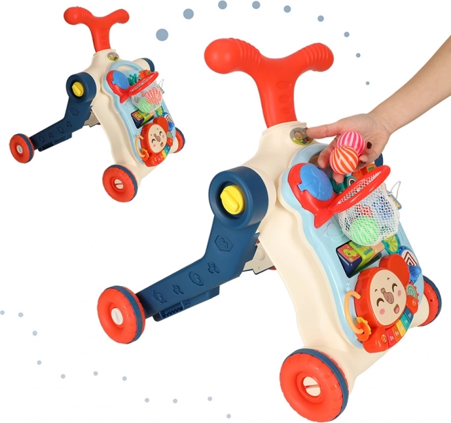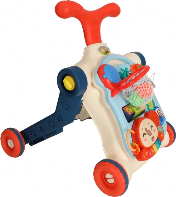 Det multifunktionelle baby walker og interaktive bord 5i1 tilbyder fem forskellige modifikationer baseret på barnets alder: gåstol, scooter, løbecykel, interaktivt bord og ophængt tavle. Dette produkt udvikler sig med dit barn uden at skulle købe nye legetøj.