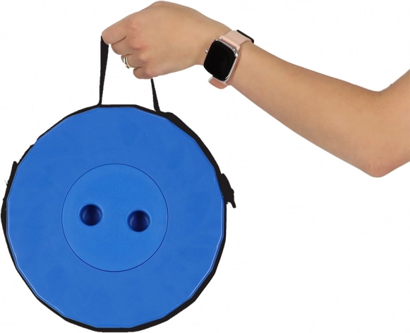 Integreret håndtag og justerbar rem gør det nemt at bære i hånden eller over skulderen. Når den er klappet sammen, har stolen en flad, pladsbesparende form.