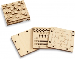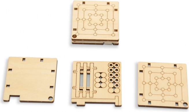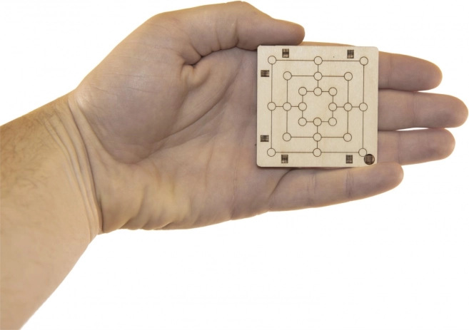 Den lille spilleplade i træ passer i håndfladen og i lommen. Ideel til rejser, skole eller arbejde – en kort spilrunde, når der er et øjeblik.