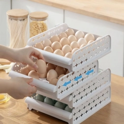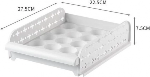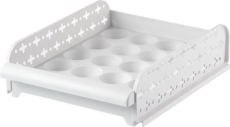 Praktisk beholder til opbevaring af æg med tilstrækkelig ventilation. Bakkerne kan stables og skubbes ind og ud som skuffer.