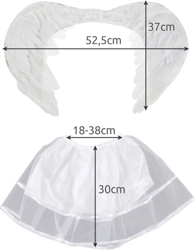 Fremragende sæt: Sættet indeholder en to-lags nederdel med elastik og hvide vinger, som trofast minder om englevinger. Kvalitetsfjer giver et autentisk udseende.