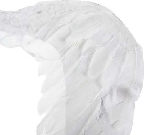Materiale: Kostumet er fremstillet af materialer i høj kvalitet. Vingerne er lavet af syntetiske fjer og fine glimmerdetaljer, fastgjort på karton for et realistisk look.