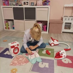 Oplev verdenen af husholdningsarbejde med vores børnesæt til husholdningsapparater. Det tilbyder tre realistiske apparater - vaskemaskine, strygejern og støvsuger, som børn vil elske. Hvert apparat er designet til at efterligne rigtige funktioner og bidrage til sjov og lærerig leg.