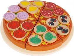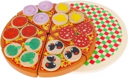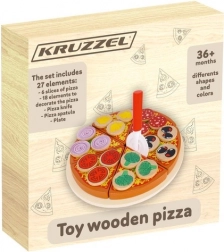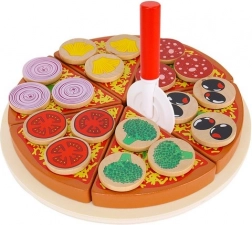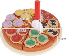 Træpizza med velcro er et kreativt legetøj, der lader små børn lave pizza med alsidige ingredienser. I pakken findes der 27 dele, herunder en base, 6 pizzaskiver, spatel, kniv og 18 forskellige grøntsagsingredienser. Takket være kvalitetsmaterialer og sikker maling er legetøjet ikke blot underholdende, men også sikkert. Der medfølger klistermærker, som gør det muligt at sætte ingredienser på og "skære" pizzaen, hvilket udvikler koordinations- og logiske tænkefærdigheder.