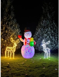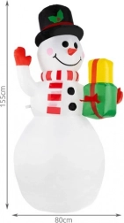 Den oppustelige snemand med indbygget LED projektør er perfekt som dekoration til både udendørs og indendørs brug. Den er udstyret med en sort hat, rød næse og holder gaver. Takket være brugen af vandtætte og holdbare materialer sikrer den en lang levetid og fantastisk udseende i mange år. Derudover har snemanden en indbygget kompressor, der hurtigt puster strukturen op til perfekt form.
