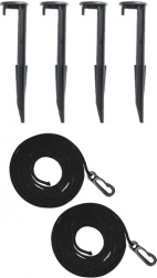 Pakken indeholder fire pløkker, to reb og to karabinhager til sikring af snemanden mod fald eller vind.