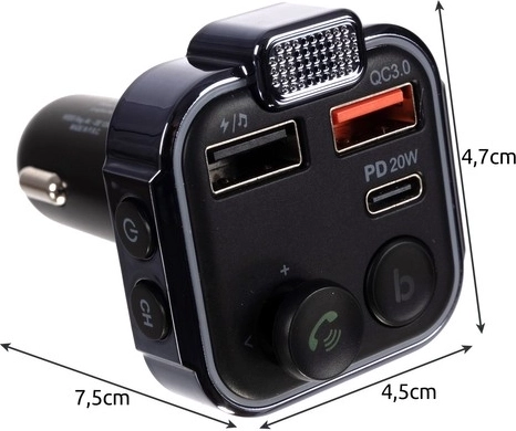 Praktisk Bluetooth FM‑sender med biloplader XTROBB forvandler enhver bilradio til et moderne multimediecenter. Tilbyder Bluetooth 5.0, håndfri opkald, to USB og USB‑C med intelligent hurtigopladning, LED‑display og fungerer i 12–24 V køretøjer. Kompatibel med iOS og Android og understøtter afspilning fra USB‑drev.