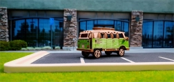 Autentiske udskæringer af vinduer, døre og hjul giver minibussen et unikt vintage-look. Perfekt som dekoration og samlerobjekt.