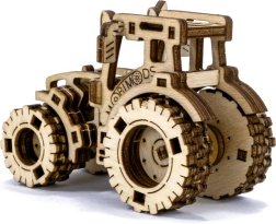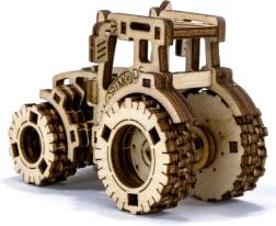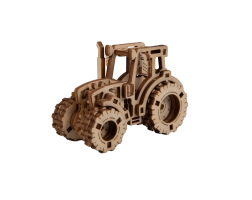 Laserudskårne elementer af krydsfiner skaber et realistisk traktorlook med tandhjul og dæk.