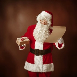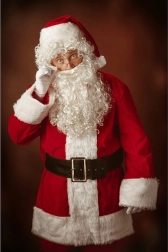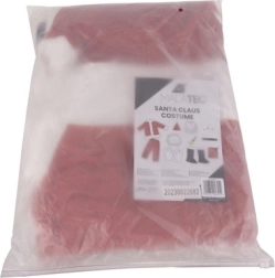 I pakken får du alt: jakke, bukser, hue, bælte, overtræk til sko, paryk, skæg med moustache, handsker, briller, gavesæk og klokke – du behøver ikke mere.