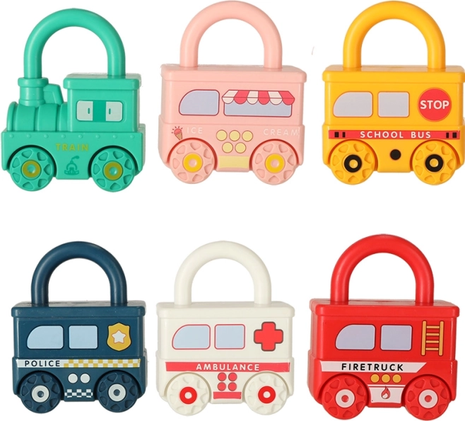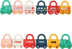 Hvert køretøj har en tydelig farve og et antal hjul, der gør det nemt at matche med de nummererede nøgler. Børn tilegner sig naturligt farver, at tælle og at sortere.