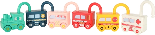 Opdag et smart Montessori-legetøj, der udvikler finmotorik, øje-hånd-koordination og logisk tænkning. Hvert lille køretøj har sin egen lås, og barnet åbner den med den rigtige nøgle – efter tal, hjulene på billedet eller ved forsøg og fejl. Når de er låst op, kan bilerne forbindes til et farvestrålende tog og tage på en fantasifuld tur gennem værelset.
