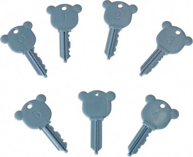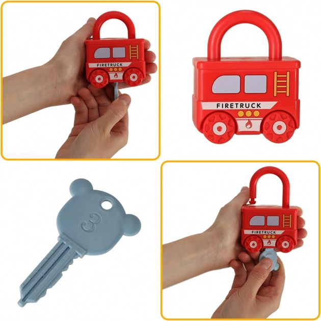Takket være grafik på begge sider øver børn genkendelse af køretøjer og grundlæggende farver. Sættet er lavet af kvalitetsplast uden skarpe kanter, så det er holdbart og sikkert til daglig leg. I pakken finder du 6 køretøjer og 7 nøgler, hvoraf én magisk nøgle åbner alle låse.