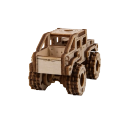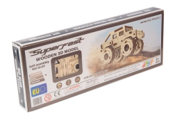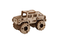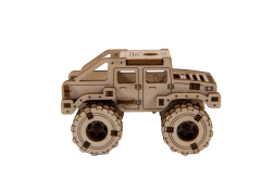 Produktet af økologiske materialer respekterer bæredygtighed – uden plastemballage. Den færdige model kan du desuden male efter din fantasi, så den passer til din indretning eller samling. Perfekt til fans af monstertrucks, børn fra 8 år og voksne modelbyggere.