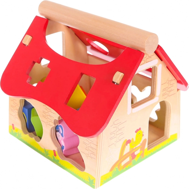 Dette træhus – puslespil med bondegårdsmotiv giver børn masser af muligheder for at udforske. Takket være åbninger i forskellige former og et sæt med 12 klodser øver børn at sortere former, farver og genkende dyr. Legetøjet støtter koncentration, tålmodighed og glæden ved succes, hver gang en del lægges rigtigt.