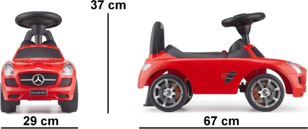 Gåbilen, inspireret af den legendariske model MERCEDES‑BENZ SLS AMG, er designet med fokus på detaljer og komfort for små chauffører. Den aerodynamiske form, den solide konstruktion og den enkle betjening giver masser af køreglæde, mens ryglænet og den stabile konstruktion hjælper med at sikre en korrekt siddestilling.