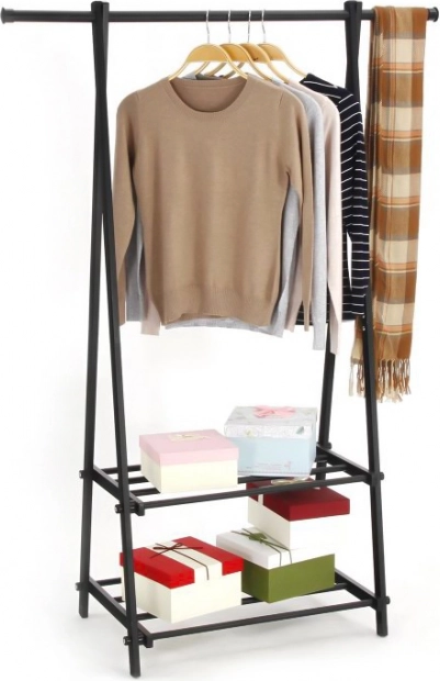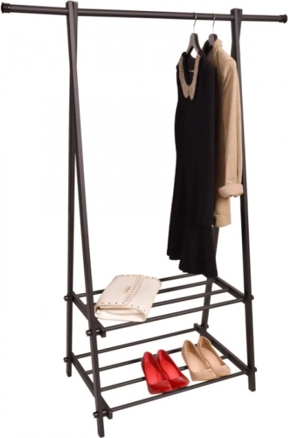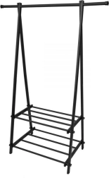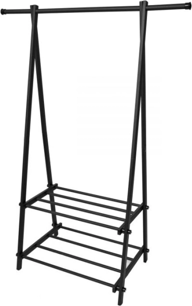 Det kompakte og lette tøjstativ hjælper dig med at holde orden i tøj og tilbehør. Det minimalistiske design passer nemt ind i moderne interiører og giver god plads til frakker, skjorter og jakker, mens de to hylder rummer sko, kasser og håndtasker.