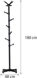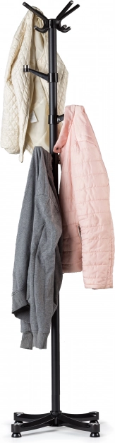Seks lavere placerede arme gør det nemt at hænge tøj for mindre brugere, mens den øvre del med ekstra kroge giver rigelig plads til frakker, tørklæder og håndtasker. Fire bredt udspredte ben sikrer stabilitet selv ved højere belastning, og gummidupper beskytter gulvet mod ridser.