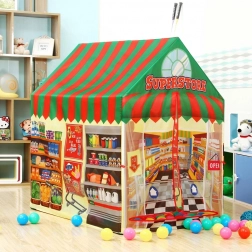 Børneteltet IPLAY i form af butikken “Superstore” giver børn et realistisk miljø til rolleleg. Takket være de farverige print af hylder, vogne og skilte kan børn nyde timer med spændende og sikker underholdning både inde og ude. Let, stabilt og nemt at flytte – ideelt til stuen, børneværelset, haven og terrassen.