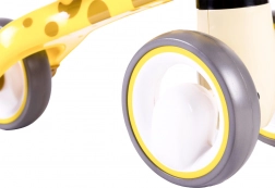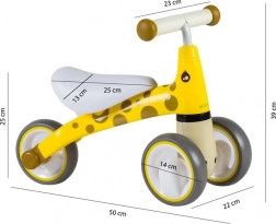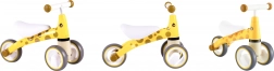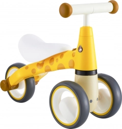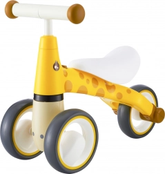 De første skridt ind i cykelverdenen bliver nemme og sikre med giraf-gåcyklen. Fire stabile hjul, låsbar styrevinkel og lav vægt omkring 2 kg giver de små ryttere tryghed og forældrene ro i sindet. Gåcyklen er lavet af solid plast og suppleret med bløde skumelementer for komfort og et sikkert greb.