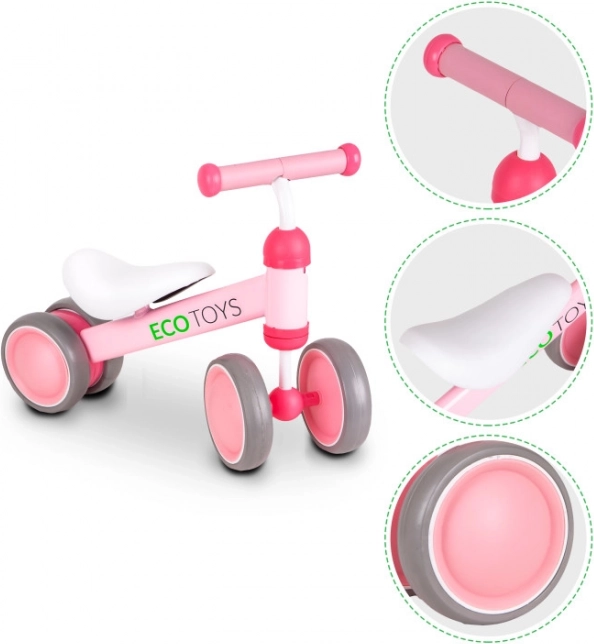Oplev ECO TOYS løbecyklen, som er designet med omtanke for de mindste, der begynder deres cykeleventyr. Takket være den lette konstruktion (2,2 kg) og holdbare plasthjul er den egnet til både indendørs og udendørs brug og tilbyder en sikker og sjov køreoplevelse.