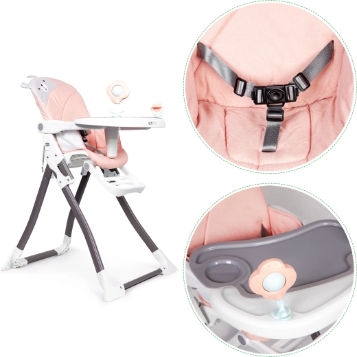 På bakken er der to farverige legetøj, som vil fange din tumlings interesse og gøre det sjovt at bruge stolen.