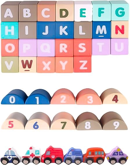 På bagsiden af klodserne er der bogstaver og tal, hvilket understøtter udviklingen af læsefærdigheder og matematiske færdigheder. Det gør læringen til en leg, hvor børn ikke kun bygger by men også lærer de enkelte bogstaver og tal at kende.