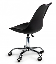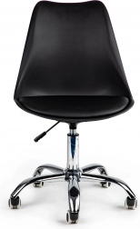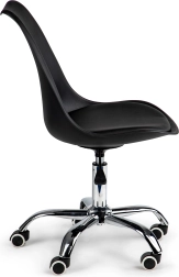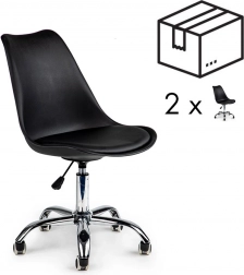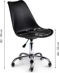 Komfort i din egen kontorpladsFor at arbejde effektivt ved skrivebordet har du brug for en stol, som muliggør behageligt computerarbejde i lange perioder. Den drejelige stol fra ModernHome er den ideelle løsning til kontorer, hjemmearbejdspladser eller receptioner i virksomheder. Sort farve med kromdetaljer passer perfekt til moderne interiører. |
