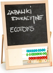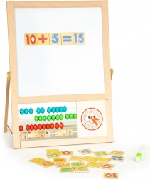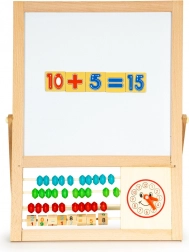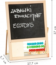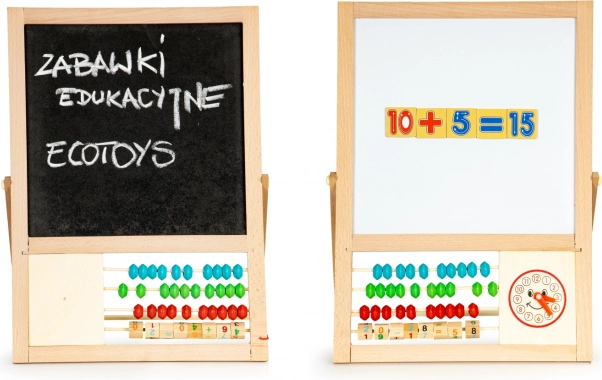 Udforsk uendelige muligheder med denne enestående tavle! Den stabile trækonstruktion tilbyder dobbeltsidet overflade - traditionel sort til kridt og hvid til tuscher og magnetiske tal. Unge kunstnere og opdagelsesrejsende kan ikke kun skabe deres små kunstværker, men også lege skole eller spille ordspil.
