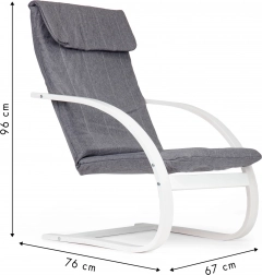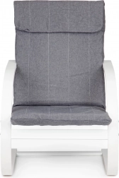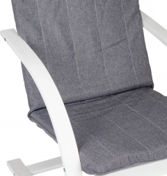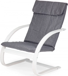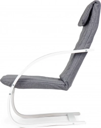 Oplev komfort i skandinavisk stil. Denne finske gyngestol fra ModernHome giver en beroligende gyngning, der afspænder både krop og sind, og den passer perfekt til både moderne og klassiske interiører. Sædet i slidstærkt stof med blød skum og den ergonomisk formede ramme giver behagelig støtte til ryggen.