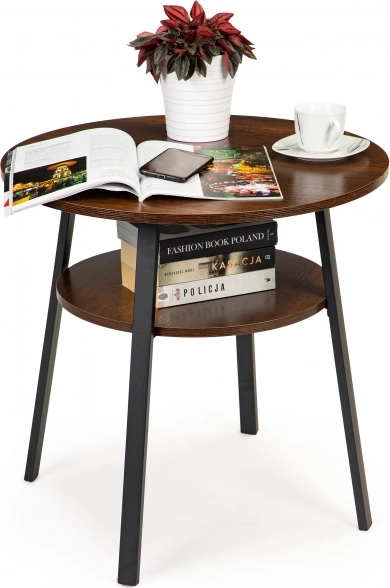 Elegant rundt sofabord fra ModernHome med moderne loftdesign, stærk metallramme og træbordplade, perfekt til stuen eller soveværelset.