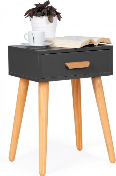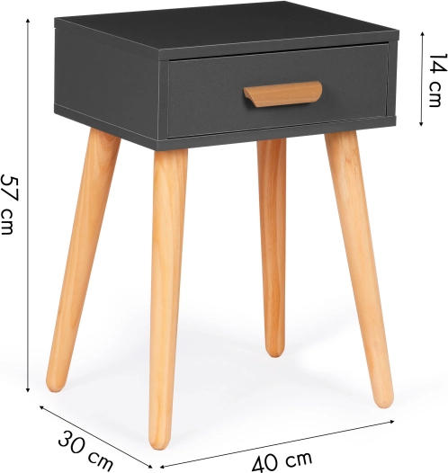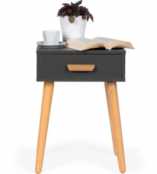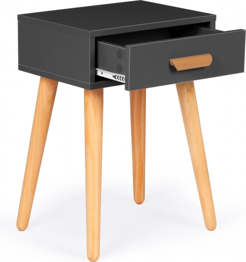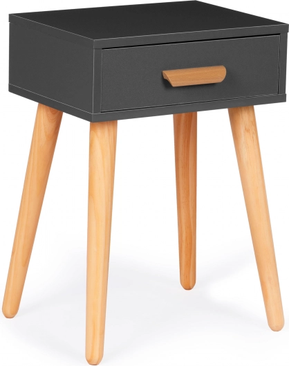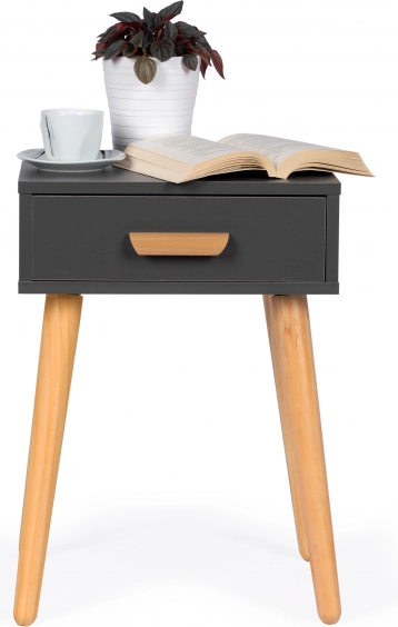 Fungerer som natbord ved sengen eller som side-/sofabord ved sofaen. Den kompakte størrelse sparer plads og tilbyder alligevel en praktisk overflade og skuffe.