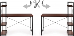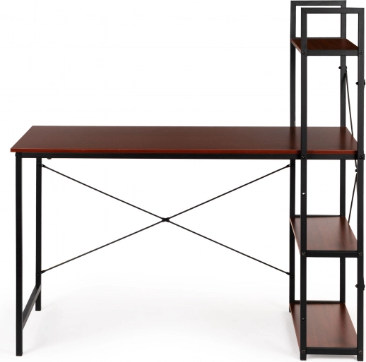 Bordet har fire hylder, ideelle til opbevaring af bøger, kontorartikler eller dekorationer. Den samlede konstruktion er forstærket med særlige tværgående afstivninger, hvilket bidrager til stabilitet og lang levetid.