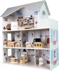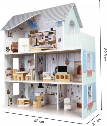 Dukkehus Residence Emma fra ECOTOYS er en ideel gave, der ikke kun vil lyse op i børneværelset, men også fortrylle hele husstanden. Dens blide og behagelige farver passer til ethvert interiør. Huset er designet til leg med større dukker og tilbyder rum til fri leg.