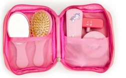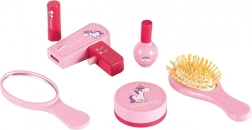 Vores kosmetiksæt er ideelt for piger, der ønsker at efterligne deres mor og skabe den perfekte makeup og frisurer. Pakken indeholder læbestift, neglelak, pudderdåse, børste, spejl og føntørrer. Alle disse genstande er lavet af kvalitetsmaterialer og findes i smukke lyserøde nuancer.