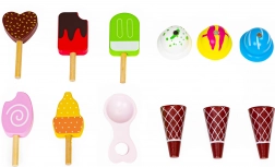 Kugler og vafler forbindes med magneter, ligesom skeen. Børn kan øse op og servere is som i en ægte isbutik – uden frustration og med masser af sjov.