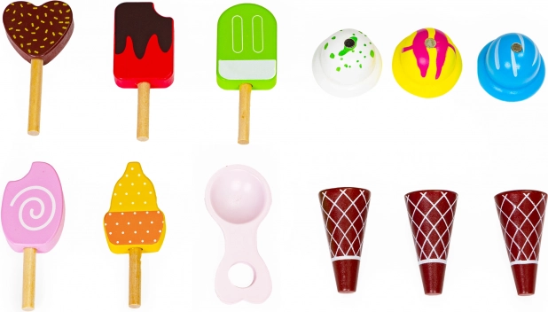 Smarte magneter forbinder iskuglerne med vaffel og ske, så opskubning og servering føles realistisk. Sættet indeholder et farverigt udvalg af ispinde og iskugler til vafler, som børn kan kombinere efter smag.
