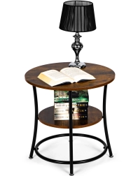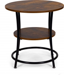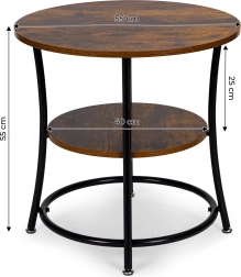 Dette sofabord har en metalramme og to hylder i rustik egetræslook for maksimal stabilitet og funktionalitet.