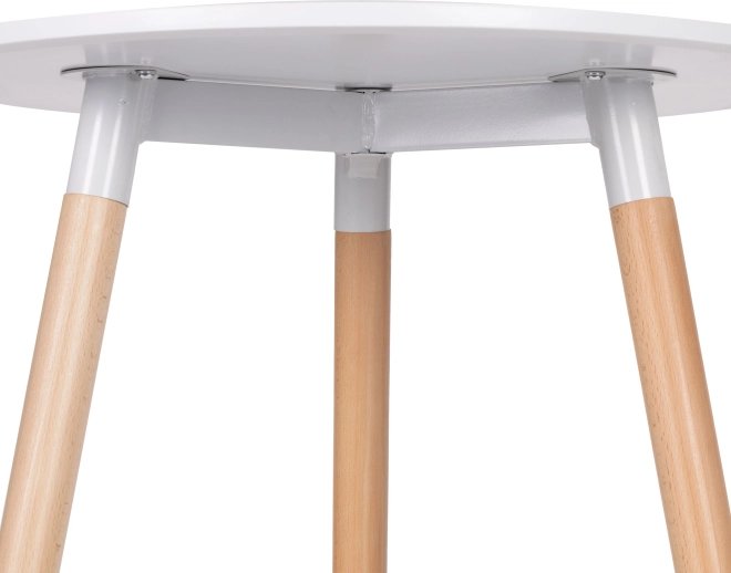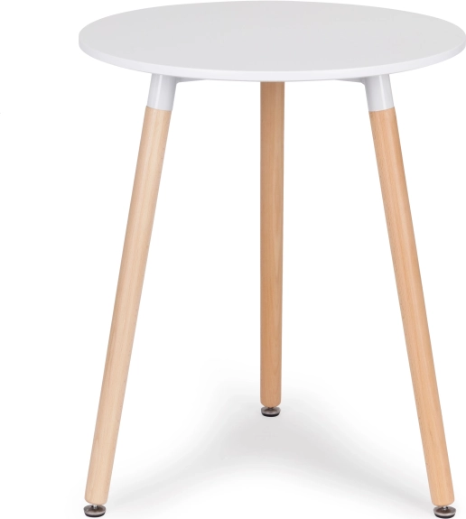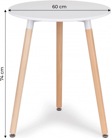 Kompakt rundt bord i ren skandinavisk stil med en diameter på 60 cm, velegnet til stue, spisestue og kontor. Kombinerer en mat hvid bordplade, bøgeben og en metalramme for høj stabilitet. Takket være de justerbare fødder er bordet skånsomt mod gulvet og let at nivellere selv på ujævne overflader. Det universelle design passer perfekt til både moderne og klassiske interiører.